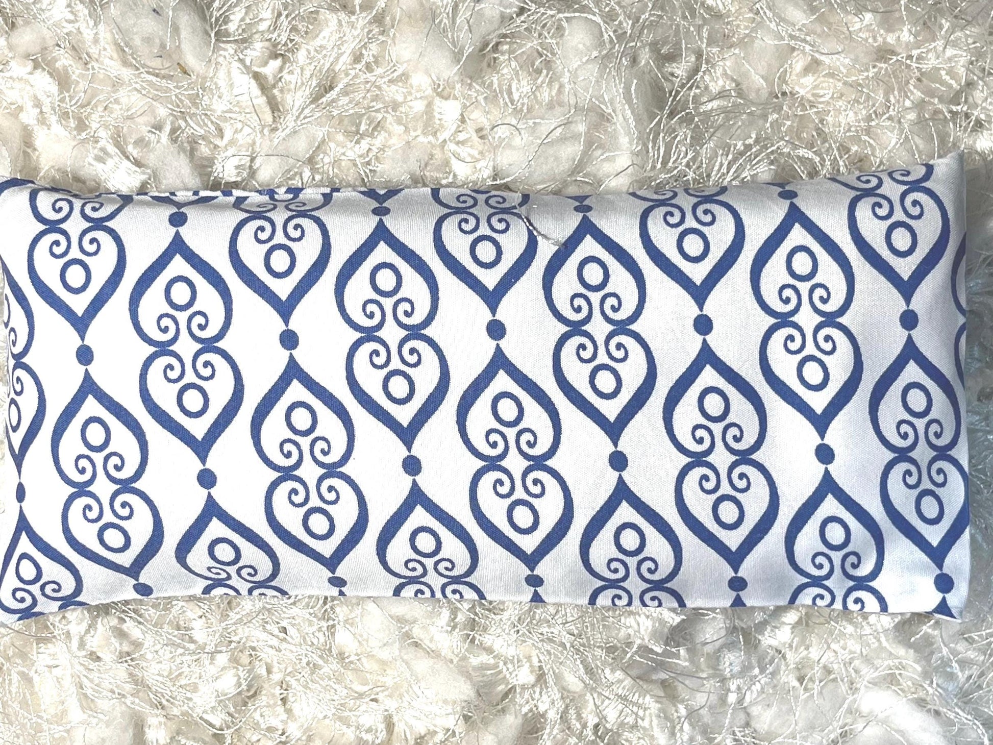 Blue and White Eye Pillow with removable cover filled with Lavender/Flaxseed