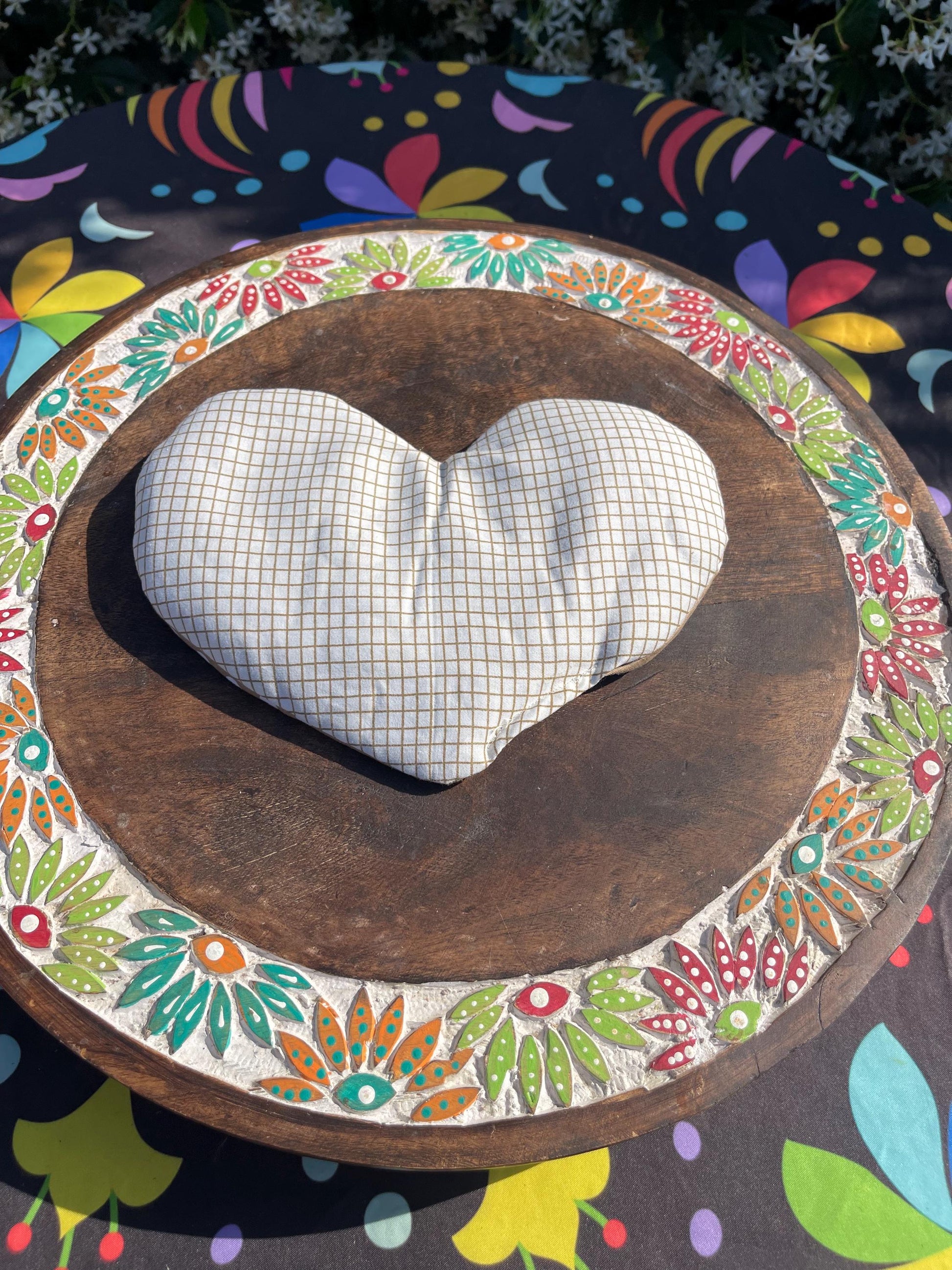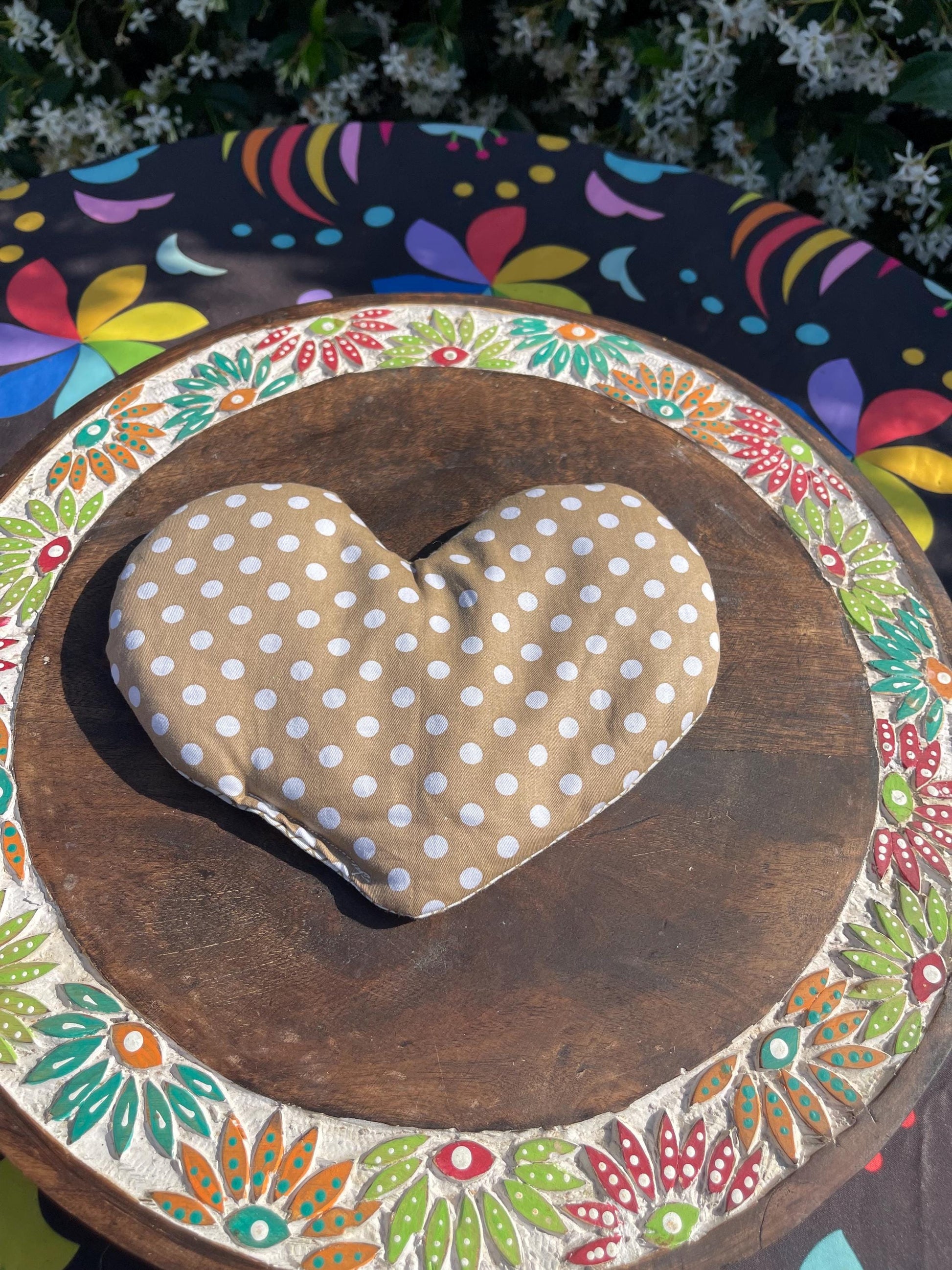 Brown Tan polka dot fabric Heart Eye Pillow filled with Lavender/Flaxseed