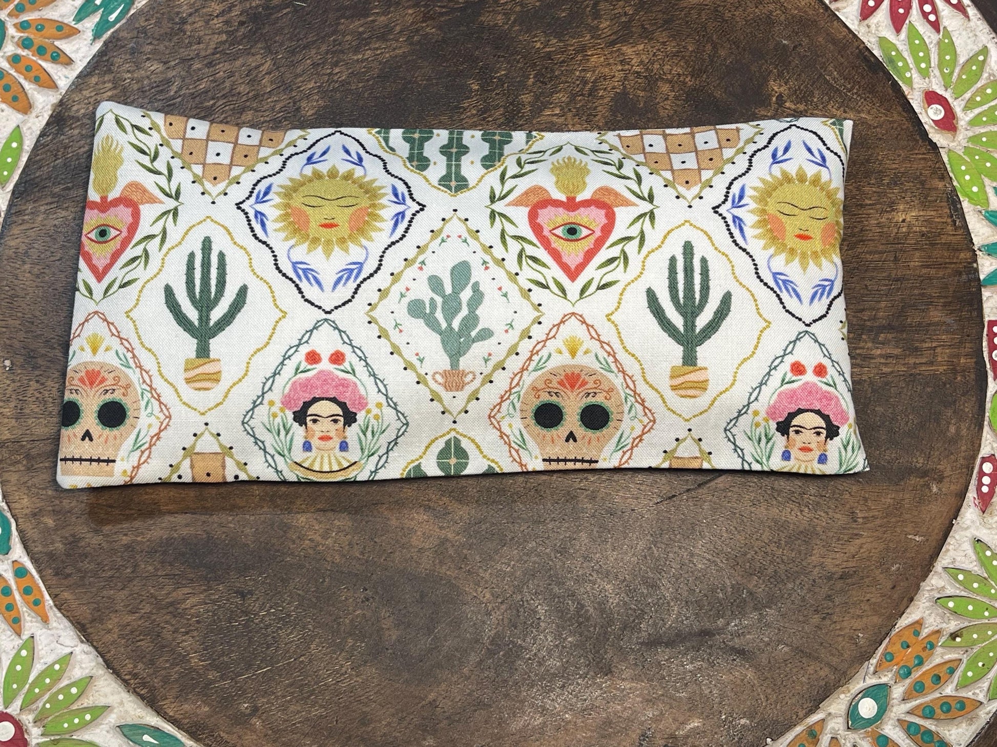 Diamond patch Frida Kahlo Eye Pillow with removable cover filled with Lavender/Flaxseed