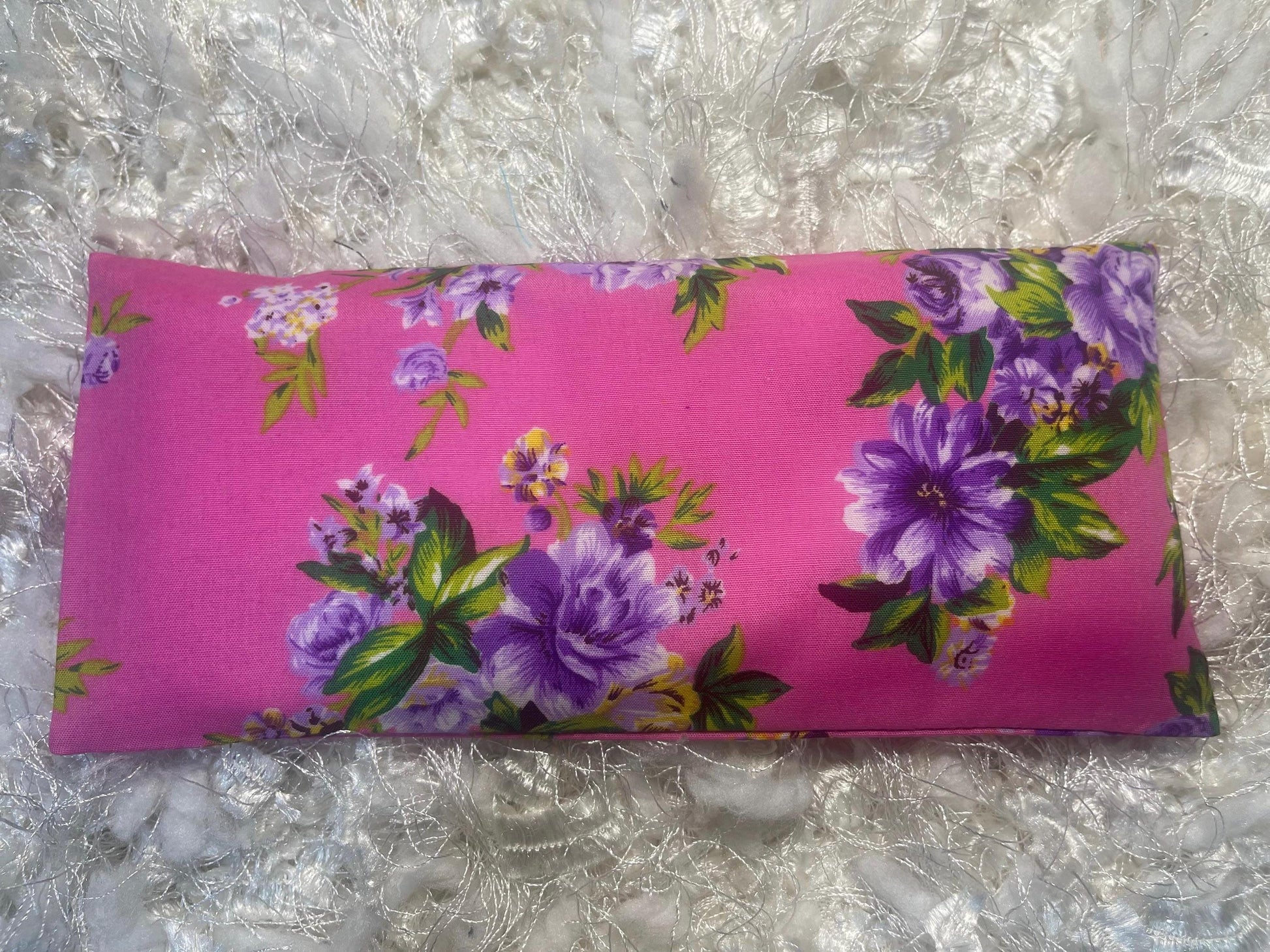 Hot Pink Floral Fabric Eye Pillow with removable cover filled with Lavender/Flaxseed