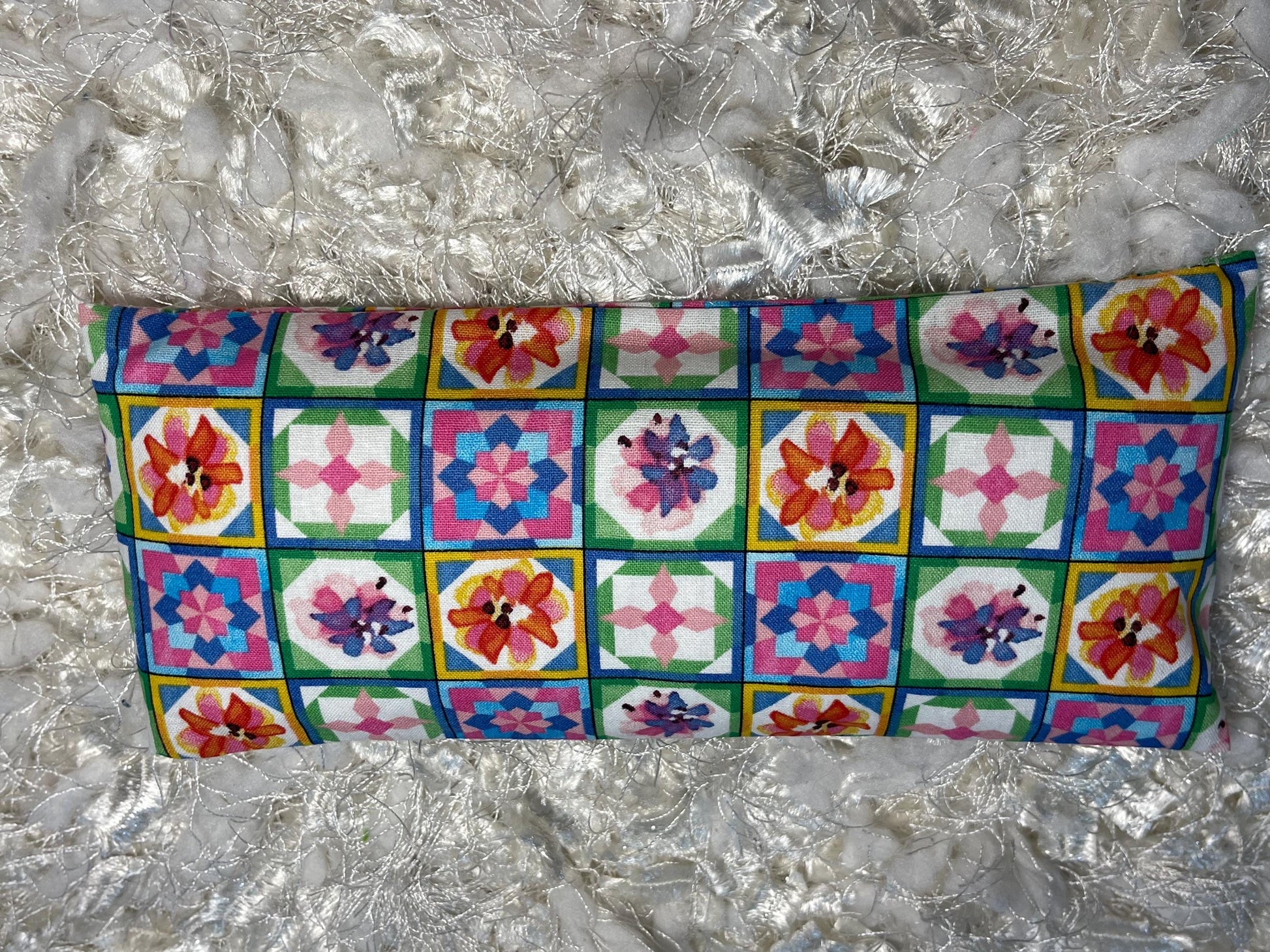 Purple / Green Talavera Tile Fabric Eye Pillow with removable cover filled with Lavender/Flaxseed