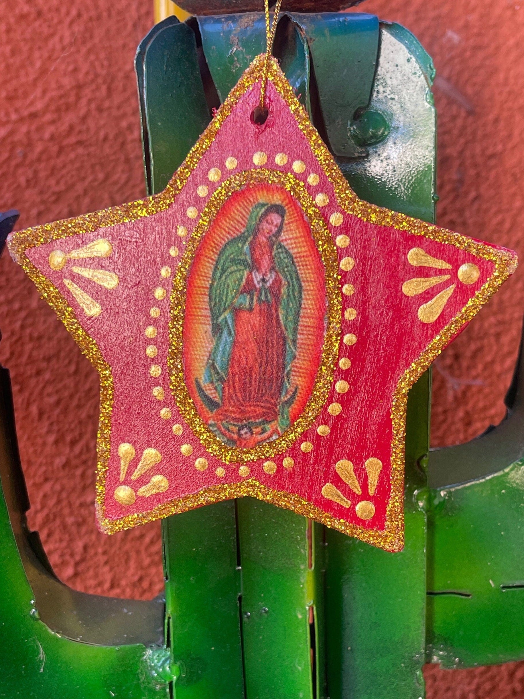 Beautiful Red & Gold Star Our Lady of Guadalupe ornament.